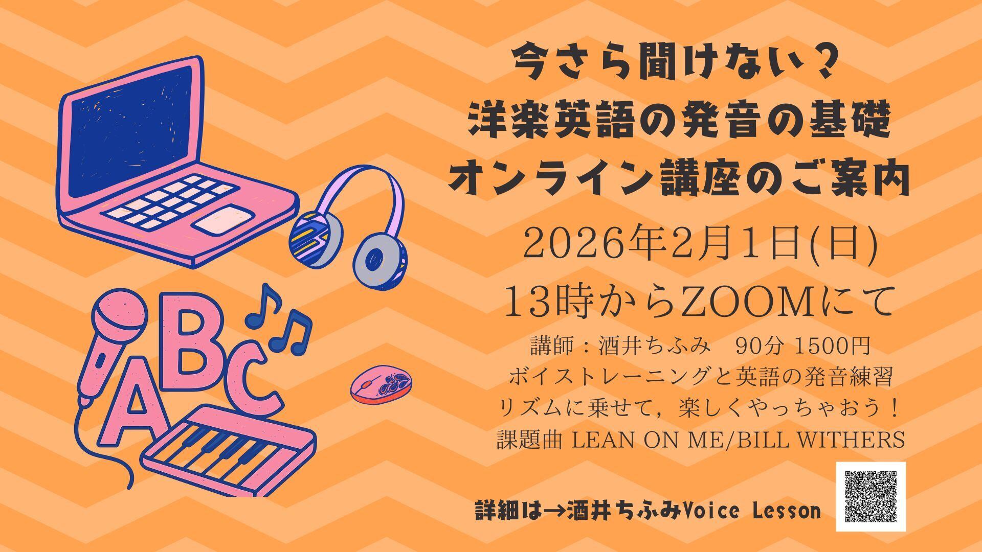 2026年2月1日ZOOMにて開催される英語発音基礎オンライン講座のチケットとなります。講座に参加希望、参加できないけれどアーカイブ視聴希望の方は、こちらよりお申し込みください。アーカイブについては講座終了後追ってご連絡致します。
